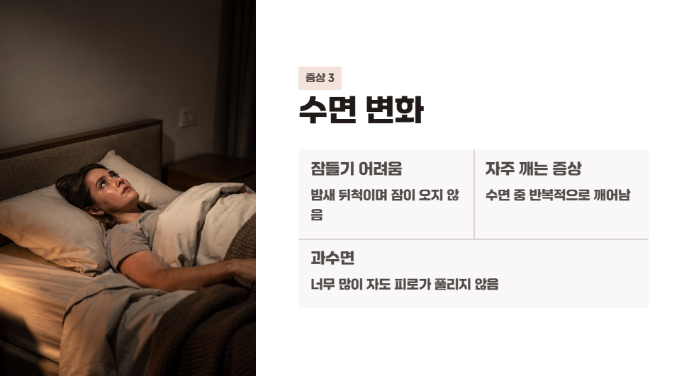 수면 문제는 우울증 초기 단계에서 흔히 나타나는 증상입니다.