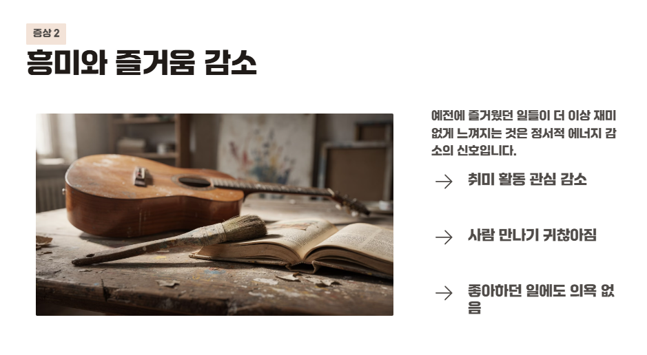 이런 변화가 나타나면 정서적인 에너지 감소가 시작된 것일 수 있습니다.