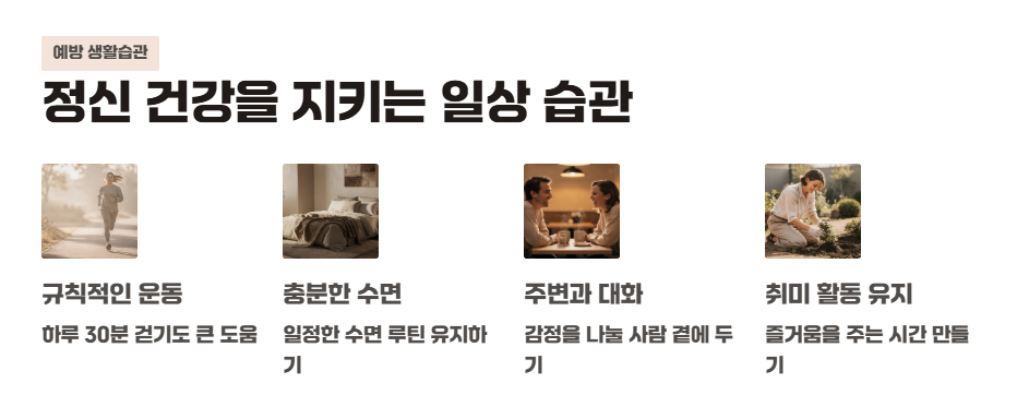 이러한 습관은 정신 건강 관리와 우울감 예방에 도움이 됩니다. 😊
