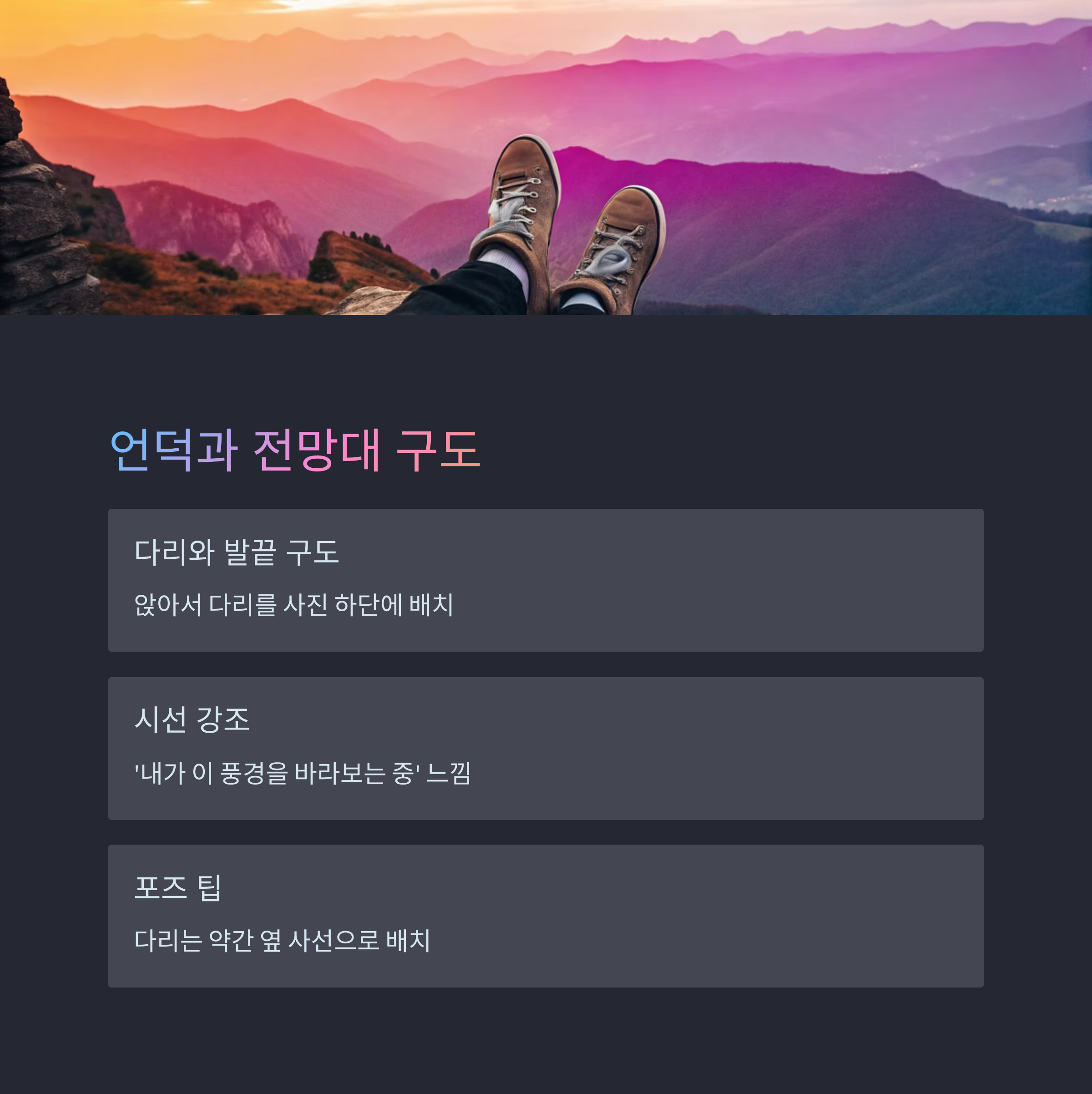 3. 높은 언덕과 전망대 – 다리와 발끝 구도 활용