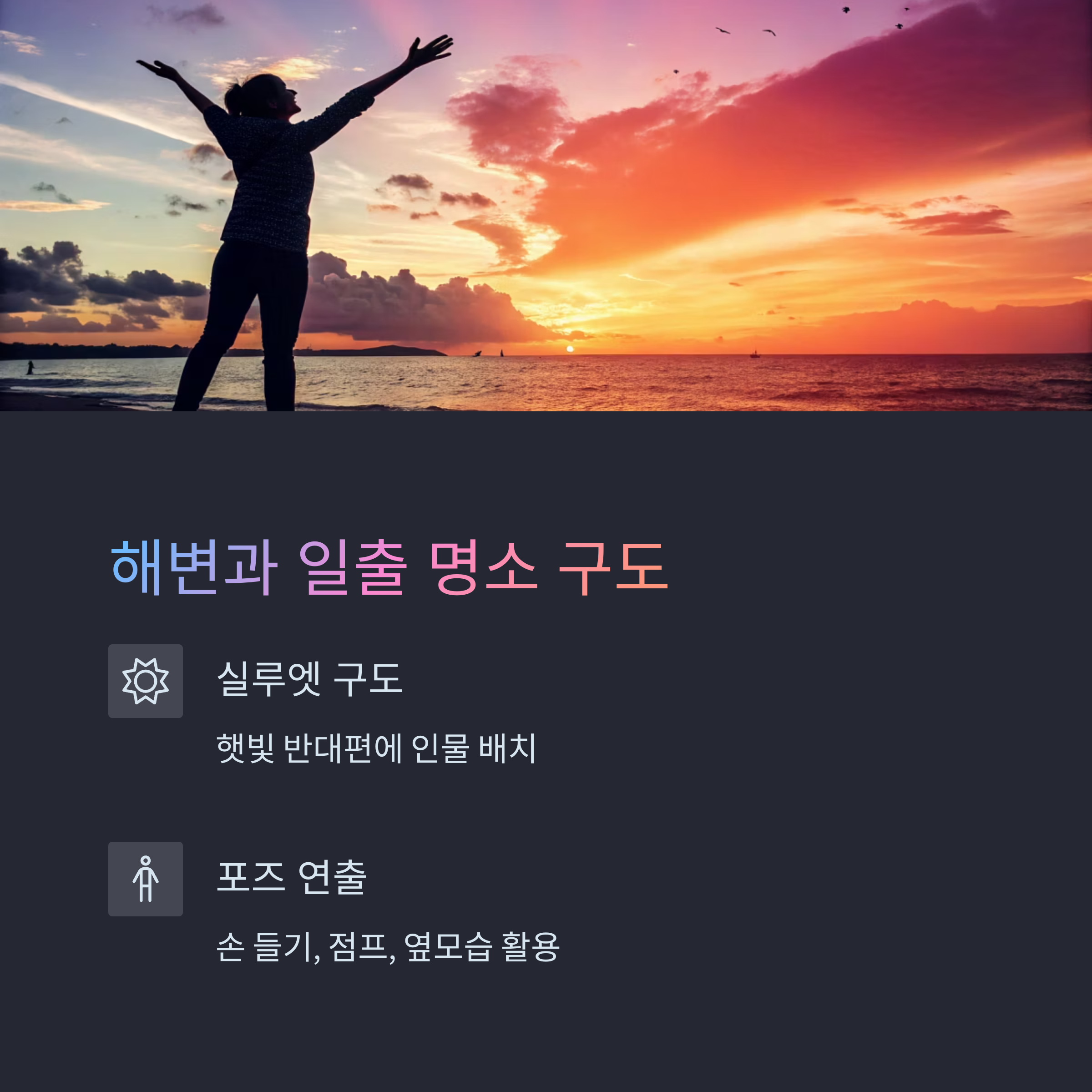 2. 해변과 일출 명소 – 실루엣 강조로 감성 완성